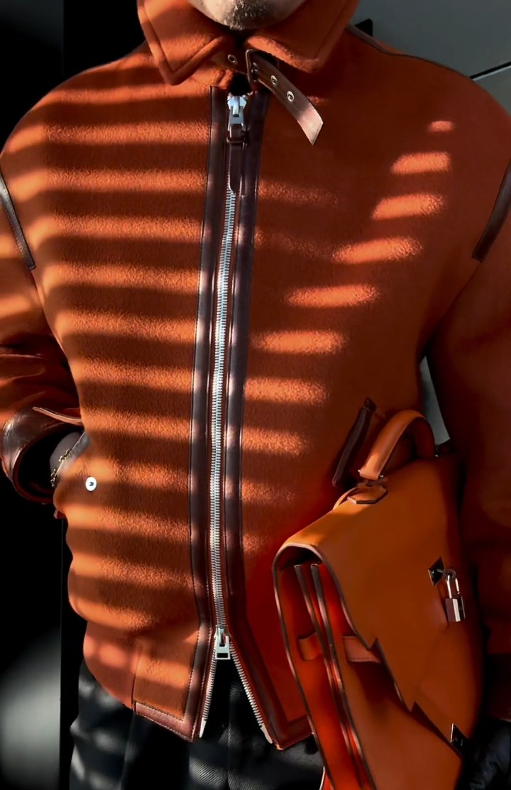 Leather-trimmed lapel cashmere-blend jacket